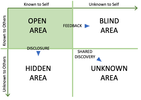 There are things you and others know about you; this is the open area. You know some things about yourself, but others don’t. This is the hidden area. You can choose to disclose what you want. There are areas unknown to both you and others, this is the unknown area and shared discovery is how they become known. The important area for this post is the blind area. This is an area others can see about you; they know the information AND you don’t. The way you discover this is through feedback.